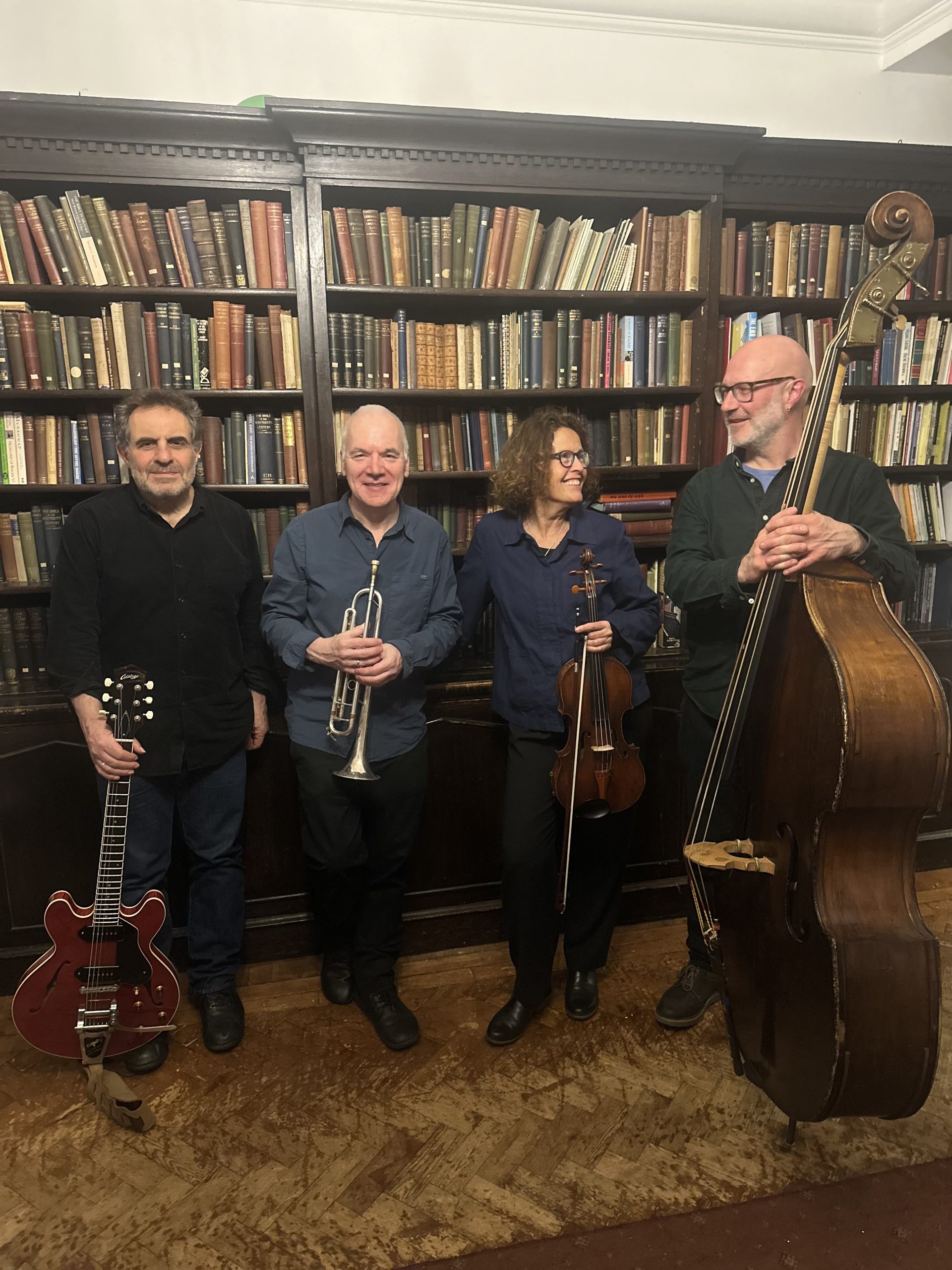 John Parricelli and Chris Batchelor have a long history going back to the 1980’s as founder members of Loose Tubes. Recently they have reunited alongside violist Margrit Hasler in Batchelor’s chamber jazz group Zoetic, releasing their debut CD Telling The Tale. Completing the quartet with his warm sound and melodic approach is double bassist Dave Whitford.